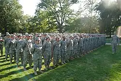 The Penn State Army Reserve Officers' Training Corps (PSU AROTC) is the ROTC department at The Pennsylvania State University.[1] It is the largest branch of the ROTC program at the school, which also has Naval ROTC and Air Force ROTC. The Nittany Lion Battalion (NLB) is one of the 41 participating battalions in the 2nd Reserve Officers' Training Corps Brigade, also known as the Freedom Brigade.[2] The brigade is headquartered at Fort Dix, NJ, and comprises ROTC programs in the North Eastern United States including CT, MA, ME, NH, NJ, NY, PA, RI, and VT.[3][4]
