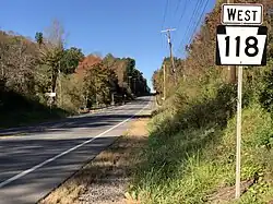 When Pennsylvania first legislated routes in 1911, what is now PA 118 was designated as part of Legislative Route 239 between Hughesville and Unityville and as part of Legislative Route 177 between Red Rock and Lehman.[4] In 1928, the road between Hughesville and Unityville was designated as part of PA 642 while the road between Red Rock and Lehman became part of PA 115. By this time, the entire road was unpaved except for the portion of PA 115 between Pikes Corner and Dallas.[5] By 1930, a small section of PA 642 east of Hughesville was paved along with a portion of PA 115 west of Pikes Corner.[6] During the 1930s, PA 642 was paved from east of Hughesville to east of Lairdsville and PA 115 was paved between Red Rock and west of Pikes Corner.[7] PA 642 was paved from east of Lairdsville to PA 42 while it was extended east from there to PA 539 (now PA 239) in the 1940s. By 1950, a new alignment of PA 115 between Lehman and PA 415 in Dallas was proposed.[8]