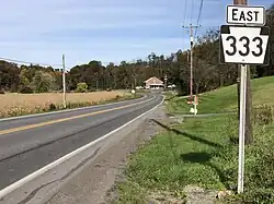 Pennsylvania Route 333 (PA 333) is a 31-mile-long (50 km) state highway located in Mifflin and Juniata counties in Pennsylvania. The western terminus is at PA 103 in Juniata Terrace. The eastern terminus is at PA 235 near Thompsontown.
