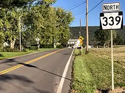 Pennsylvania Route 339 (PA 339) is a 32.8-mile-long (52.8 km) north–south state highway located in Schuylkill, Columbia, and Luzerne counties in Pennsylvania. The southern terminus is at PA 54 in Mahanoy City. The northern terminus is at PA 93 in Nescopeck. The route is a two-lane road that passes through mountainous areas in the eastern part of the state. PA 339 runs north through the Coal Region to Brandonville, where it heads northwest to follow the Catawissa Creek to Mainville. From Mainville, the route passes through farmland to Mifflinville, where it follows the Susquehanna River to Nescopeck. PA 339 forms a concurrency with PA 924 in Brandonville and has an interchange with Interstate 80 (I-80) in Mifflinville.