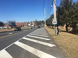 Pennsylvania Route 352 (PA 352) is a 19-mile (31 km) north–south route that runs from U.S. Route 13 Business (US 13 Bus.) in Chester, Delaware County, north to US 30 in Frazer, Chester County. The route passes through suburban areas of Delaware and Chester counties west of Philadelphia, serving Parkside, Brookhaven, Elwyn, Lima, Gradyville, and Goshenville. PA 352 is a four- to five-lane road between Brookhaven and US 1, otherwise it is generally a two-lane road. The route intersects Interstate 95 (I-95) in Chester and US 1 near Lima at interchanges. PA 352 was first designated by 1928 to run between its current termini. A portion of the route between Brookhaven and US 1 was realigned to a straighter alignment in the 1950s. By 1980, PA 352 was realigned to a short concurrency with PA 3 to avoid intersecting it at a sharp angle.