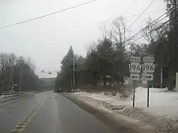 When Pennsylvania first legislated routes in 1911, the present-day corridor of PA 507 was designated as part of Legislative Route 168 between the border of Lackawanna and Wayne counties and Gouldsboro and as Legislative Route 254 between Gouldsboro and Tafton.[6] PA 507 was designated in 1928 to run from US 611 (now PA 435) west of Gouldsboro northeast to US 6 in Tafton. At this time, the route was paved between US 611 and PA 90 (now PA 191) near Newfoundland and for a short stretch to the north of Newfoundland.[7] By 1930, PA 507 was paved between PA 90 north of Newfoundland and PA 790 in Greentown along with a small section near Lake Wallenpaupack.[8] The entire length of the route was paved during the 1930s.[9] In 1969, an interchange with I-81E (now I-380) was built with US 611 near the southern terminus of PA 507, at which point US 611 headed south along the freeway.[10][11] An interchange between I-84 and PA 507 was completed in 1968 and opened to traffic in the 1970s.[10][12][13]