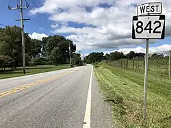 Pennsylvania Route 842 (PA 842) is a state highway in Chester County, Pennsylvania. The route runs from PA 841 in West Marlborough Township to U.S. Route 322 Business (US 322 Bus.) in downtown West Chester. PA 842 runs through rural areas with some development between PA 841 and West Chester as a two-lane undivided road. Along this stretch, the route forms a concurrency with PA 82 in Unionville, where it intersects the western terminus of PA 162. In West Chester, PA 842 is routed along one-way streets. PA 842 was first designated by 1928 between PA 82 in Unionville and US 122/PA 5/PA 62 in West Chester. The route was extended west to PA 841 in 1937.