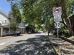When Pennsylvania first legislated routes in 1911, what is now PA 32 was designated as part of Legislative Route 252 between Morrisville and Yardley.[5] PA 32 was designated in 1927 to run between Philadelphia and US 611/PA 2 in Kintnersville, heading northeast along US 13 to Morrisville before turning northwest on its present alignment. At this time, the entire route was paved.[6][7] In 1928, the southern terminus was cut back to US 1 (Bridge Street) in Morrisville, removing the concurrency with US 13.[8] In 1932, a parkway was proposed along the route from Morrisville to New Hope; however, it was never built.[9] In 1969, another proposal was created for a $30 million PA 32 freeway from I-95 (now I-295) near Yardley to US 202 in New Hope. At the time, this freeway was to be completed by 1985. However, the proposal never came about.[10] In the 1980s, PA 32 was extended southwest to its current terminus, replacing a part of US 1 Alt., which had replaced the earlier US 1 designation, on Bridge Street.[11]