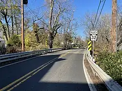 PA 32 is a two-lane undivided road that parallels the Delaware River for most of its length.[2] The road is popular for Sunday drivers, bikers, fishermen, and viewers of fall foliage.[3]