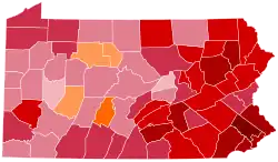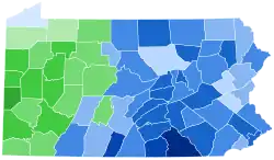 Leader performed not only well in the Democratic strongholds of Philadelphia, Pittsburgh, and Scranton, but won 34 of the state's 67 counties. His impressive win included capturing victories in many GOP strongholds. He captured over 60% in his home of York County, and becoming one of the only Democratic candidates for any major statewide office to take the state's rural, conservative center.[4]