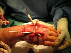 A Penrose drain is a soft, flexible rubber tube used as a surgical drain, to prevent the buildup of fluid in a surgical site. It belongs to the "passive" type of drain, the other broad type being "active". The Penrose drain is named after American gynecologist Charles Bingham Penrose (1862–1925).[1]