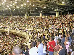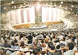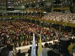 Brazil for Christ (BPC) was founded in 1955 and was the first major Pentecostal church to be founded by a Brazilian.[22] Manoel de Mello began as a preacher in the National Evangelization Crusade, but quickly left it to form his own church, modeled after the Chile for Christ church,[23] after accusations of charlatanism. De Melo purchased radio airtime on major stations and, as an effective speaker, drew crowds of up to 100,000 during evangelistic campaigns. By 1963, he established 1,100 congregations and built a 25,000-seat temple in São Paulo.[12] The BPC quickly became a staple in São Paulo religious life, even getting involved in politics (which most Pentecostal churches at that time left alone).[3] It joined the World Council of Churches in 1969, the third Pentecostal group to do so after two Chilean denominations in 1961.[24] By the 1980s, however, the church's influence had diminished greatly.[3]