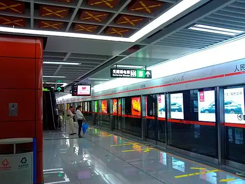 The park has its own station, People's Park station, on Line 2 of the Chengdu Metro. It is also served by bus lines 5, 13, and 37.[2]