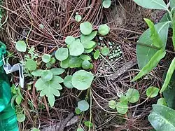It is short-haired herb with a prostrate, stoloniform stem that roots from the nodes. Limbs in a clear, thin, dry membrane measuring roughly 2 1/2-2 centimetres long and width about 4 cm long. The petiole and peduncle Orbicular plate from P. Muelleri; unlike P. claytonioide, it has a smaller stature and non-cordulate margins. It also has a distinct pubescence.[4]