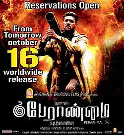 - ^ "'Peranmai' to release before 'Aadhavan'". The New Indian Express. 14 October 2009. Archived from the original on 26 July 2024. Retrieved 25 July 2024.