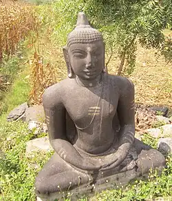 The Buddhist images are located in villages around Perambalur. There are two major images of Buddha in the village Thiyaganur. One of them is enshrined in a small pillared compound, while the other is located in a private farm. The private farm was converted to a Buddhist Dhyana Mandap (meditation centre) during 2013 enshrining the image at a cost of ₹ 50 lakhs with public contribution. It was modelled similar to the Buddhist shrine in Rajagiri, Bihar.[5] Both the images are 6 ft (1.8 m) tall in a cross legged seated posture and sported with coal black hair. Both the images are sported with a smile. Another image is found in the four way junction of Paravai, a village close to Thiyaganur. There is an image in Veeraganur Dalit Colony. Ogalur houses the image, which has been elevated to a higher structure in modern times by the villagers. The image of Ogalur is locally called "Dubai Buddha" as the locals believe that worshiping the deity helps in overseas travel.[6] There are many other images scattered in the villages, some which are in dilapidated condition.[2] The images are spread across three villages, namely, Paravai, Okalur and Perumathur.[7] As per experts, the image in Perumathur is an image of Jain Tirthankara.[6]
