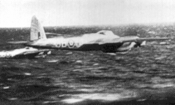 "It was still snowing thickly as we climbed aboard, but then came a slight lull. It still looked impossible to take off, but we saw Pick loping towards his F for Freddie, stuffing out his pipe and giving Ming a final pat. With his engines starting we realized the game was on. Within minutes we were all airborne, visibility nil. I was flying No. 2 to Bob Iredale but never saw him or anyone else. It was like flying in a blancmange."[115]