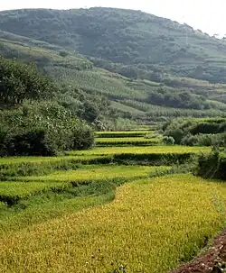 38 million ha (26%) of rice lands are terraced but unirrigated. This cropping system produces about 17% of world rice.[8]
