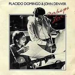 "Perhaps Love" is a song that John Denver wrote and recorded as a duet with Plácido Domingo. The song appeared on Domingo's 1981 album of the same title. "Perhaps Love" is the only song on the album with Denver's vocals alongside Domingo's. Denver also appears on the album's cover version of his composition "Annie's Song", where he accompanies Domingo on guitar. Released as a single with "Annie's Song" on the B side, "Perhaps Love" peaked at #22 on the U.S. Adult Contemporary chart and #59 on the Billboard Hot 100 in 1982.[1] Remaining in print, the song sold almost four million copies by 2008.[2]