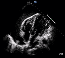 | A 2D echo transthoracic echocardiogram of pericardial effusion. The "swinging" heart. | |