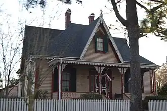 Perry-Spruill House, also known as Spruill House, is a historic home located at Plymouth, Washington County, North Carolina. It was built between 1882 and 1884, and is a 1+1⁄2-story, three-bay, Gothic Revival style frame cottage. It has a high hipped roof with intersecting cross gables ornamented with inverted fleur-de-lys sawnwork, a full-width front porch, pointed Gothic windows, and is sheathed in weatherboard.[2]