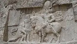 A bas-relief at Naqsh-e Rustam depicting the victory of Sasanian ruler Shapur I over Roman ruler Valerian and Philip the Arab.