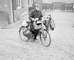 Breton onion salesman with bicycle travelling through Wales may be involved in cold calling on new clients and relationship selling for existing clients -