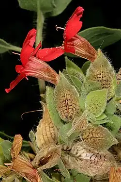 Petalidium coccineum is a species of a fast-growing shrub that bears red flowers and smooth, white bark. This shrub may grow up to 2.5 m in height. It is native to northwestern Namibia, particularly the dry savannah of Kaokoveld and Owamboland. Flowers occur in short racemes up to 40 mm long, borne in the leaf axils. Like other species in its genus, Petalidium coccineum bears hygroscopic fruit capsules which, when moist, release two flat seeds explosively.