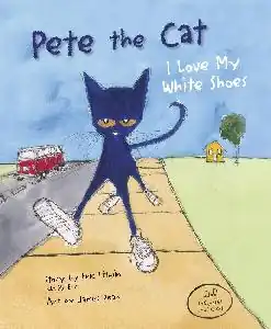 The first book, Pete the Cat: I Love My White Shoes, is the story of an anthropomorphic blue cat named Pete whose white shoes become dirty after he steps in various substances, but "Pete never loses his cool".[1] Written as a song, its refrain is "I love my white shoes", changing to "I love my red shoes", "I love my blue shoes", and "I love my brown shoes". He then steps in a bucket of water and the colors wash off, and they become wet, but still never loses his cool, he just sings his song.