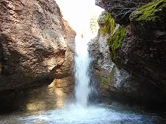 Peteetneet Creek was a good camping spot on the Mormon Road, a Mormon pioneer and 49er wagon route between Salt Lake City, Utah and Los Angeles, California.[3] The Latter-day Saints first settled in Payson in 1850.[4] After improvements were made to the Mormon Road wagon route in 1855, it had become what was known as the Los Angeles - Salt Lake Road. This was a wagon freight route used each year from late fall through winter into early spring, between Southern California and Utah, isolated by the winter snows in the Sierra Nevada Mountains from San Francisco and by the Rocky Mountains from the rest of the United States to the east. This route remained the only winter season route to the outside world until the railroad arrived in Utah in the late 1860s.[5]: 2, 172–178