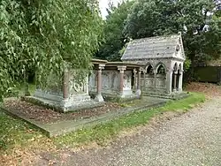 His wife died on 26 January 1865. He died less than a month later, on 22 February 1865. They are buried side by side in the churchyard of St Michael and All Angels, Edenham, Lincolnshire. The canopied tomb of their second daughter, Elizabeth Susan (d. 1853) is adjacent, and those of their son Albyric (d. 1870) and grandson Gilbert Heathcote-Drummond-Willoughby, 1st Earl of Ancaster (d. 1910), are nearby. All five tombs are Grade II listed, some jointly.[5][6][7]