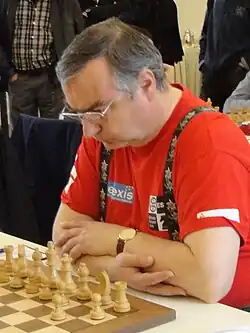 Only after the Peaceful Revolution did he gain a better chess footing in Germany; in 1990 he became German Blitz Chess Champion and in 1993 received the International Master (IM) title.[2][3] In the same year he won the German Chess Championship, which brought him the qualification for the FIDE World Chess Championship Zonal Tournament in Ptuj and his first chess grandmaster norm. He finally received the title in 1997 after winning the grandmaster chess tournament in Schöneck together with Normunds Miezis at the end of 1996 and thus achieving his third and last norm.[4] In 1996 he also became German champion in rapid chess.