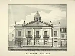 The Lafayette Theatre in New York City (originally the Lafayette Circus) was redesigned by Grain in 1827.[11] The circus ring was replaced and an inclined plane was added to give it a rake similar to modern theatres. At the time it was the largest theatre in both the United States and the United Kingdom.[12]