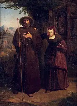 He was there for less than a year when his studies were interrupted. His parents died within a few months of each other, so he had to return home to attend to the family's business. He was able to return to the Akademie in 1841 and studied portrait painting with Karl Ferdinand Sohn. He also developed an interest in history painting. His studies were completed in 1844, and his first known painting, depicting Werner of Oberwesel, dates from the following year. Except for a visit to Munich, nothing is known of his whereabouts from then until he returned to Koblenz around 1850.[1]