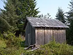 Peter Roose settled on one of these prairies when he immigrated to the Ozette Lake area, claiming 160 acres (65 ha) under the Homestead Act.[3] Fellow Swedish immigrant Lars Ahlstrom settled on the other, about one and a quarter miles (2.0 km)] to the south, at about the same time. Where Ahlstrom's prairie had a Makah cabin he could live in initially, Roose, a carpenter by trade, built all his own structures from timber he cut and milled on site.[2] He built a log cabin to live in at first, along with a storage shed/root cellar, well, barn, and outhouse. He built a sawmill, using a boat engine salvaged from a shipwreck on the nearby beach for power. Some time in the 1930s he built the two-room house currently standing on the site, out of milled lumber from his own sawmill. He also built cedar picket fencing to delineate various areas of the homestead. Still standing on the site are the shed, well, barn, fencing, and the second house. The outhouse is barely standing and the sawmill has collapsed. The original cabin is gone.