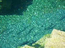 The Petit Pabos River is known for its Atlantic Salmon (salmo salar) fishing in crystal clear blue water and his deep forest environment. The river has long been a renowned salmon river from 1880 to 1950. Overfished, the salmons where almost completely annihilate in 1984 and the river was closed to fisherman. It has been reopened since 2003.[2] The Petit Pabos River is smaller the other 2 Pabos rivers: the Grand Pabos River and the Grand Pabos West River and have a smaller salmon presence. But it is often consider to be more beautiful and less fished.