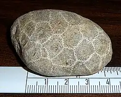 | Unpolished Petoskey stone with cm scale | |