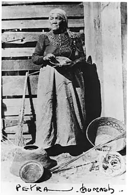 Petra Pico (c. April 29, 1834 – September 7, 1902) was a Chumash basket weaver, elder, and regarded as a figurehead of the Ventureño Chumash Community. She was born at Mission San Buenaventura in 1834 to two Chumash neophytes. Her parents were also born and raised at the Mission and had ties to villages throughout modern-day Ventura County, near Santa Paula and the Santa Monica Mountains.[1]