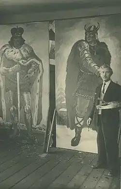 Between 1909 and 1920 Kalpokas traveled around Europe: Switzerland, Hungary, Italy. In 1914 he attempted to organize a large one-man exhibition in Germany, but more than 120 of his paintings were lost due to World War I. After he returned to Lithuania, Kalpokas began teaching. First lecturing at drawing courses, established by Justinas Vienožinskis, he later taught at Kaunas Art School. In 1928 Kalpokas held a large personal exhibition in Kaunas. In 1930 he published a textbook on painting techniques and in 1945 became a professor.[1]