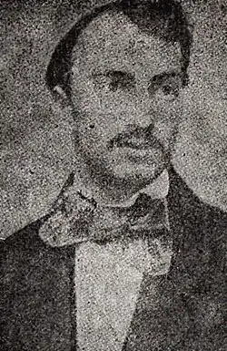 Carp was a scion of the old boyar class in Moldavia: his family has attested roots going back to the 17th century,[3] and believed by some to have originated in the Baltic region.[5] The Carps were related to other noble houses, including the Cozadinis, the Racovițăs and the Kostakis.[6] They owned the manorial estate of Țibănești, formed over the centuries by the accumulation of yeomen farmland[6] and still a lucrative business in their lifetime.[1][5][7] Carp's father, also known as Petre (Petru), was a Spatharios of the Princely Court,[4] then Stolnic.[5] Educated abroad during the earliest wave of Westernization, fascinated by Enlightenment ideals and the Carboneria, he took part in political agitation before the Moldavian Revolution of 1848.[3] His wife, Petre P. Carp's mother, was Smaranda Radul,[4] from the boyar branch of Dealu Mare.[5] The couple had another son, who died at birth.[5]