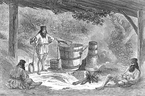Unable to contract more foreign loans,[103] Carp opened the country's oil industry and forestry to foreign investments, and introduced budget cuts in local administration.[104] As a leading measure, the Premier attempted to relinquish the state's share in the National Bank of Romania (BNR). The project was opposed by BNR founder and National Liberal doyen Eugeniu Carada, who informed Carp that there was little chance of profitable privatization.[103] BNR Governor Mihail C. Sutzu also resisted the move—the other shareholders ultimately agreed to purchase government stock, and to provide future loans for the state.[105] As an alternative measure, Carp leased the state tobacco monopoly to a bankers' syndicate.[103] In Education, Minister Constantin C. Arion imposed a norm against the accumulation of offices in the academic system, a measure largely directed at PNL-ist staff.[106] Through his Minister of Internal Affairs (Constantin Olănescu), Carp also imposed strict measures against moonshiners, after which riots and bloodshed occurred throughout the poorer regions of Wallachia.[103][107]