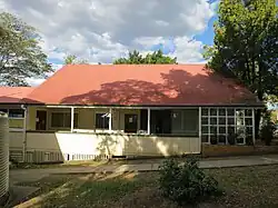By 1887 the school had become too crowded and needed to be enlarged.[24] Another low-set building with a main room of 40 by 20 feet (12.2 by 6.1 m), and a western verandah 8 feet (2.4 m) wide, with semi-enclosed hat rooms at each end and a central staircase, was built in 1888 to a standard design by Robert and John Ferguson. The tender of Thomas Curry, for £319/10/0, was accepted by the Education Department in December 1887.[25] The new building was added to the north-western end of the Stanley school building, connected by at least one internal door.[1]