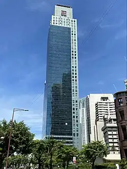 The Petron Megaplaza is an office skyscraper located in Makati, Philippines.[7] It previously held the title as the tallest building in the Philippines from 1998 to 2000 when the PBCom Tower was topped-off. It has a total ground to architectural spire top height of 210 meters, soaring at 45 storeys high.[8]
