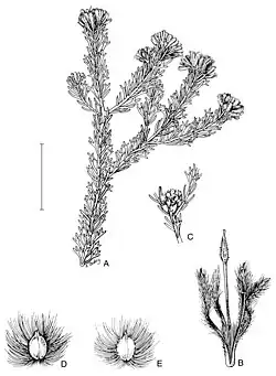 | A=flowering branchlet; B=flower; C=fruiting cone; D,E=upper and lower surfaces of nut | |