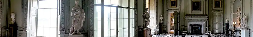 The 2nd Earl was responsible for the collections of Rococo mirrors and antique statues that exist in the house today[8] and was responsible for commissioning Lancelot 'Capability' Brown to landscape the parkland during the 1750s and 1760s.[3] The works involved the demolition of the formal gardens that preceded it, the landscaping of the wider parkland to raise the profile of the lawn in front of the house, infill quarries, smooth over the terraced walks and digging out buildings in the parkland down to foundation level. Archaeological investigations seemed to suggest that the turf was removed prior to the levelling works so they could be replaced after the works were completed and aiding the current natural look to the landscape.[4]