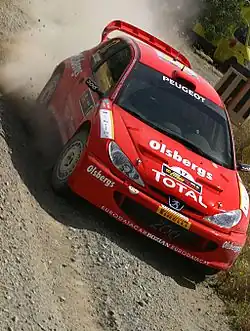 The Peugeot 206 WRC is a World Rally Car based on the Peugeot 206. It was used by Peugeot Sport, Peugeot's factory team, in the World Rally Championship from 1999 to 2003. The car brought Peugeot the manufacturers' world title three consecutive years (2000 to 2002). Marcus Grönholm won the drivers' title in 2000 and 2002.