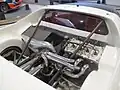Rear view, showing the lack of rear body panels and exposed engine. -