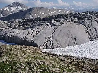 The Pfannenstock (2,573 m) is a mountain of the Schwyzer Alps, located east of Muotathal in the Swiss canton of Schwyz. It lies on the karstic range between the valleys of Muota and Linth, west of the border with the canton of Glarus.
