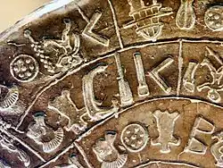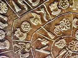 The sign images below are reversed left-to-right relative to their appearance on the disc, reflecting their presentation in most Western books and articles.[17]