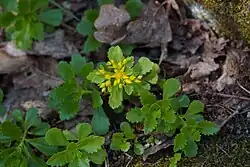 Phedimus ellacombeanus, commonly known as yellow stonecrop,[1] is a species of succulent native to Japan and Korea. Formerly known as Sedum ellacombianum or Sedum kamtschaticum subsp. ellacombianum. It is bears compact mounds of bright green leaves and clusters of yellow, star-shaped flowers that appear in the spring. It is often mistaken for the closely related Phedimus kamtschaticus.[2]