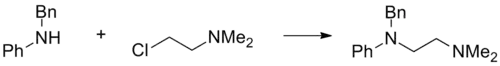Phenbenzamine can be prepared by the reaction of N -benzylaniline with 2-chloroethyldimethylamine.[ 8] [ 9]