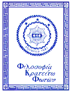 The colors of Phi Kappa Phi are blue and gold.[1] The society's Greek letter name was selected from its motto Φιλοσοφία Kρατείτω Φωτῶν (Philosophía Krateítõ Phõtôn) or "Let the love of learning rule humanity".