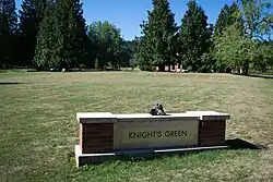 Knight's Green: A sprawling green lawn, named in honor of Nike's Phil and Penny Knight whose generosity made possible the Marylhurst Knights Opportunity Scholarship Program.