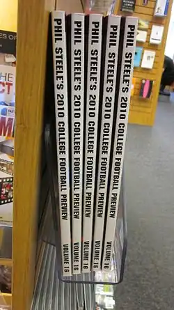 Phil Steele (c. 1960) is an American sportswriter and analyst who focuses exclusively on college and professional football.[1] He is considered a "highly respected prognosticator" within the sports media.[2] His company, Phil Steele Publications, produces the annual preseason magazine Phil Steele's College Football Preview, which he personally writes in almost its entirety.[3] The first edition was published in 1995.[4] In a comparison of the major preseason college football magazines, ESPN writer Pat Forde said: